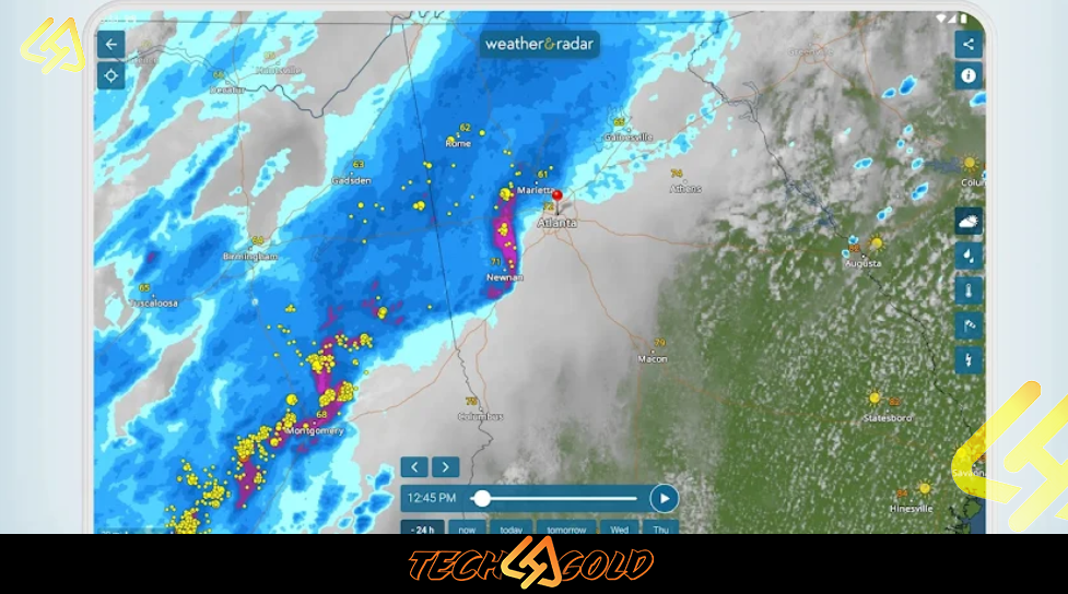 كذلك تطبيق Weather & Radar Pro هو الوجهه الاولي لمن يريد أن يستخدم أدوات الطقس المتقدمة، حيث يتيح لك إمكانية تحميل تطبيق الطقس المدفوع الذي يقدم تجربة خالية من الإعلانات تمامًا، يوفر التطبيق لمستخدمي القدرة على متابعة تقلبات الجو بطريقة دقيقة، ويتيح لك كذلك استخدامه كـ تطبيق لمتابعة العواصف والأمطار من خلال الخرائط والرادار الحي الذي يوضح مواقع السحب وحركة الهطول في الزمن الحقيقي، كما يمكنك الاعتماد عليه كأفضل تطبيق خرائط الطقس التفاعلية