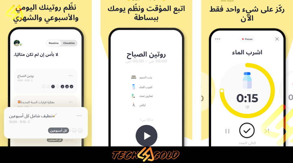 تطبيق تخطيط المهام:عند تنزيل تطبيق Routinery سيكون باستطاعتك تنظيم مهامك، بدلا من كتابة قائمة تقليدية، حيث يتم ترتيب المهام ضمن تسلسل زمني واضح، مما يسهل تنفيذها دون تردد.